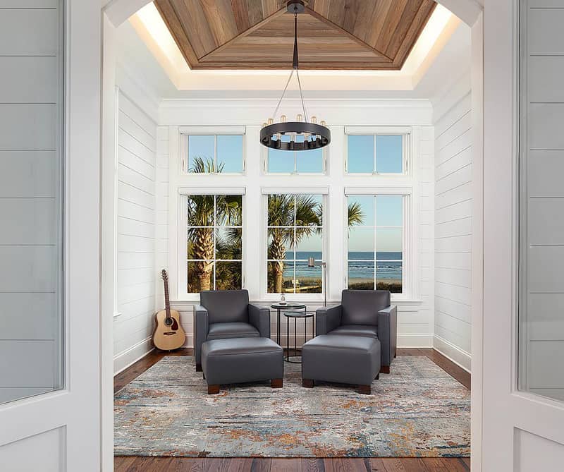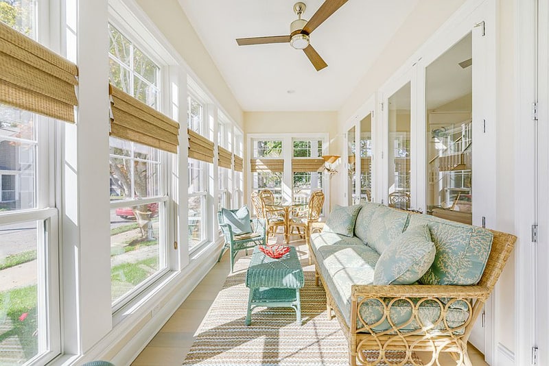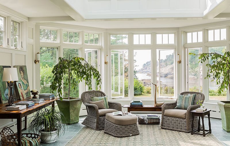 การออกแบบห้องซันรูมนั้น หัวใจสำคัญก็คือช่องรับแสงที่ต้องสามารถรับแสงธรรมชาติจากภายนอกได้อย่างเต็มที่ สามารถเลือกใช้ผนังกระจกที่สูงจากพื้นถึงฝ้าไว้รอบ ๆ ห้อง