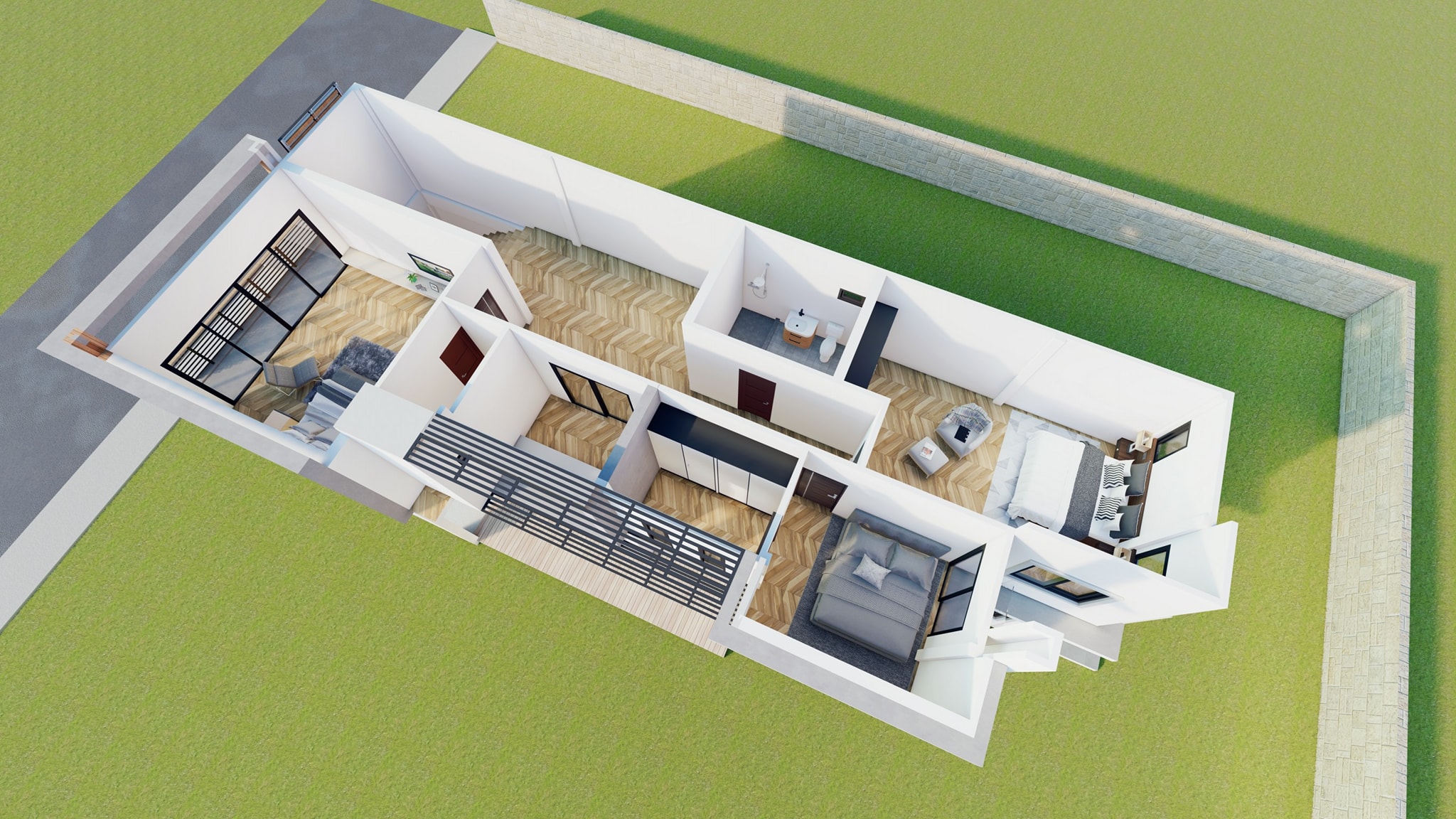 แบบบ้านสไตล์โมเดิร์นหลังนี้ประกอบไปด้วย 4 ห้องนอน 3 ห้องน้ำ 1 ห้องโถงนั่งเล่น 1 ห้องครัว พร้อมที่จอดรถ 1 คัน พื้นที่ใช้สอยรวม 285 ตารางเมตร บประมาณก่อสร้างอยู่ที่ 3.29 ล้านบาท ต้องการเฉพาะแบบแปลนพร้อมวิศวกรรับรองคิดค่าใช้จ่าย 39,500 บาท ( พร้อม BOQ )