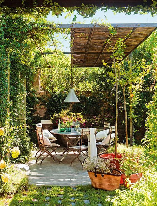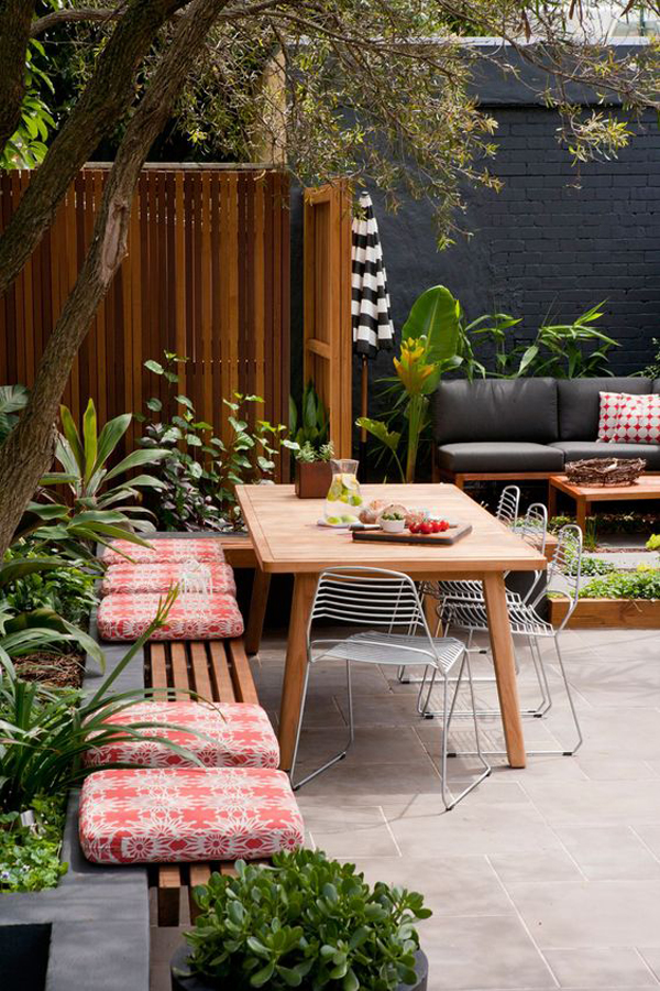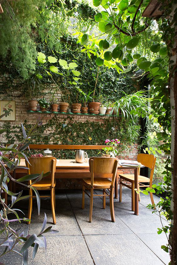 การทานอาหารนอกบ้านเป็นกิจกรรมที่ช่วยเพิ่มความสัมพันธ์ในครอบครัวละเป็นการเปลี่ยนบรรยากาศมื้ออาหารที่จำเจ ซึ่งการจัดโต๊ะทานข้าวไว้ในสวนสไตล์ป่าทึบเช่นนี้ จะทำให้เราสามารถดื่มด่ำกับธรรมชาติได้อย่างเต็มที่ในระหว่างมื้ออาหารโดยไม่ต้องออกไปปิกนิกนอกบ้าน