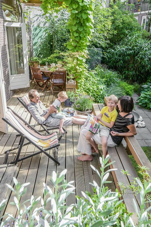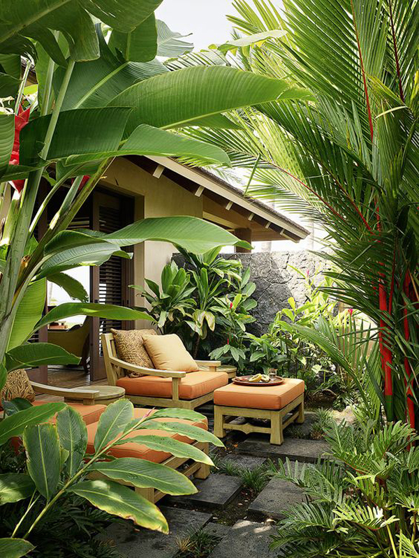 ในช่วงเวลาที่อากาศสดใส การใช้เวลาพักผ่อนอยู่ในสวนถือว่าเป็นกิจกรรมที่ช่วยผ่อนคลายความเหนื่อยล้าจากการใช้ชีวิตเราได้เป็นอย่างดี แม้จะเป็นการจัดสวนแบบป่าทึบ แต่ก็ต้องมีมุมสวย ๆ ไว้นั่งเล่นพักผ่อน หรือทำกิจกรรมอื่น ๆ ด้วย