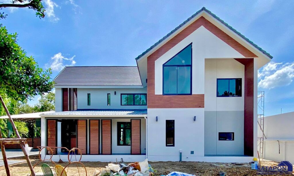 แบบบ้านสองชั้นสไตล์โมเดิร์นบาร์น ผลงานการก่อสร้างจากทีมงาน SATAPON CONSTRUCTION...