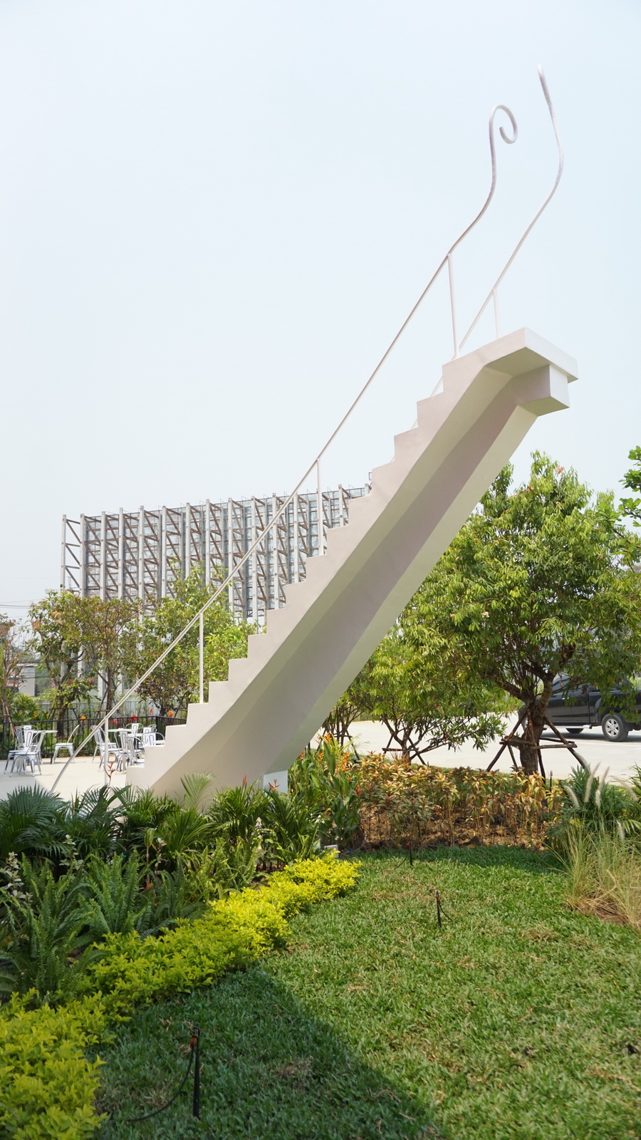 ก่อนที่จะเข้าไปด้านในร้าน เราก็จะสะดุดตากับผลงานศิลปะชิ้นนี้ ซึ่งเป็นบันไดที่ทอดไปสู่ท้องฟ้า เสมือนเป็นบันไดที่จะนำพาเราไปสู่สรวงสวรรค์