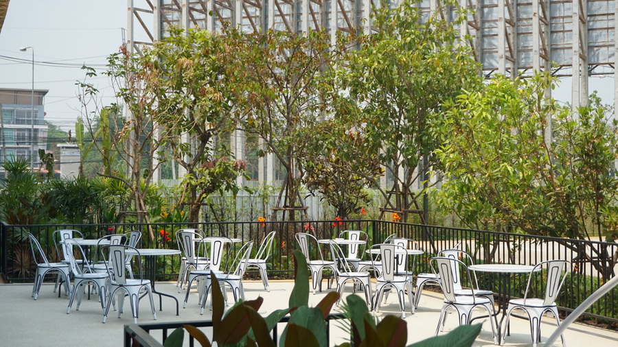 พื้นที่บริเวณนี้จะเป็นพื้นที่สำหรับนั่งดื่มกาแฟด้านนอกร้าน โดยหาใครที่ชอบบรรยากาศแบบโปร่งสบาย ก็จะเป็นมุมที่ตอบโจทย์ได้ดีเลย