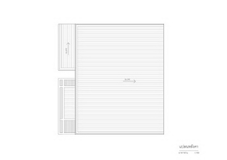 บ้านหลังนี้ถูกดีไซน์ในรูปทรงเรขาคณิต หลังคาทรงหมาแหงนซ้อนกันสองชั้น มีเสาเหล็กรองรับน้ำหนักใต้ชายคา ฝ้าใต้หลังคาทำจากไม้ ผนังภายนอกทาด้วยสีขาว แทรกรายละเอียดด้วยไม้ระแนง เป็นเส้นสายดึงดูดสายตา ทำให้บ้านหลังนี้สวยงาม โดดเด่นยิ่งขึ้น