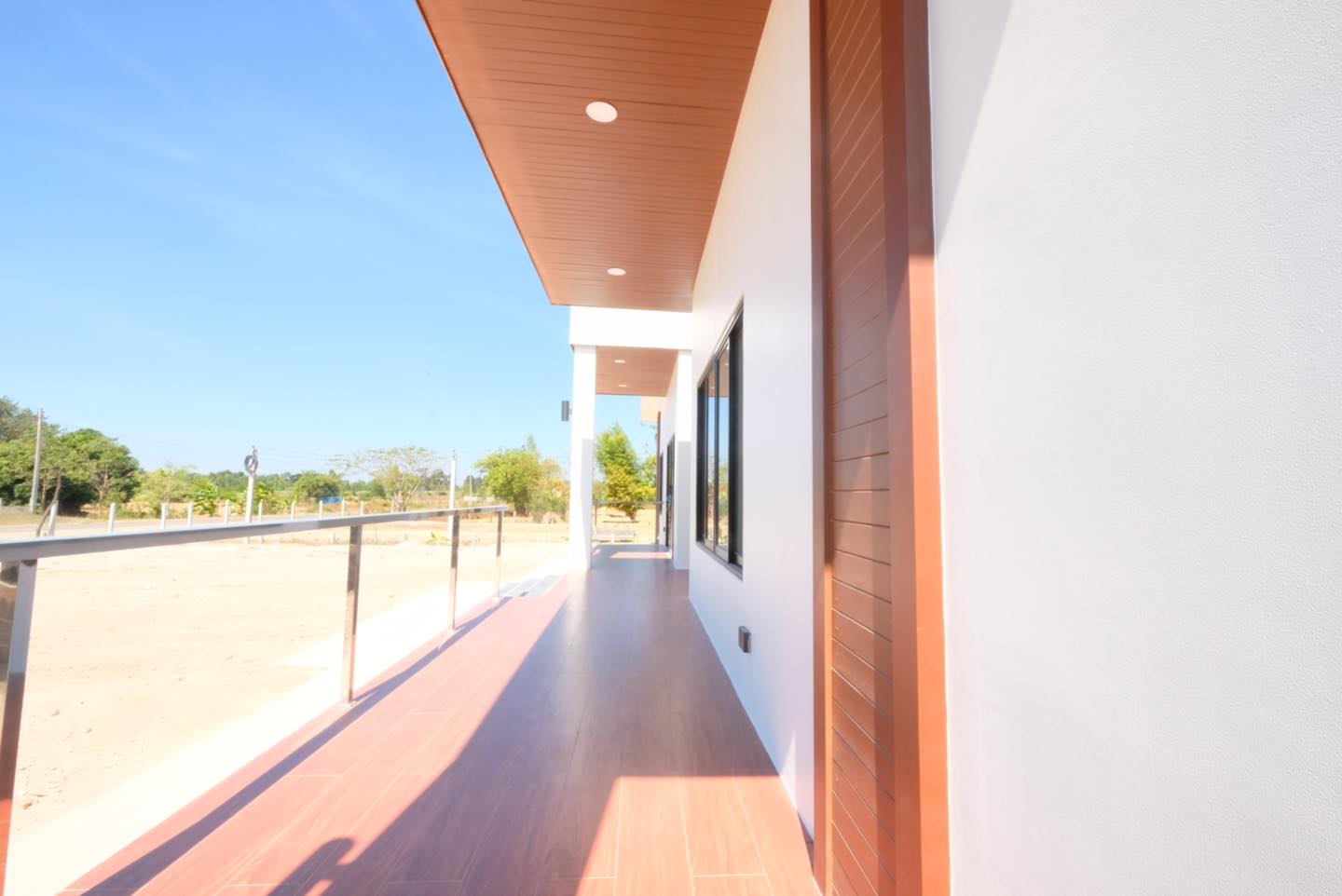 โดยพื้นที่ด้านหน้าก็จะมีลักษณะเป็นระเบียงยาว ๆ มีราวกันตกติดตั้งเอาไว้อย่างเป็นสัดส่วน จะใช้นั่งเล่น หรือตกแต่งเป็นมุมสวยงามของบ้านก็ได้ทั้งนั้น