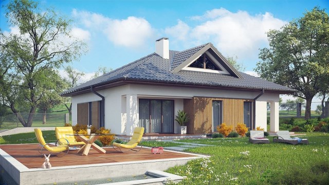 หลังคาทรงมนิลา หรือหลังคาปั้นหยาผสมจั่ว ให้ความสวยงาม และมีความภูมิฐานของบ้านนั้นแฝงอยู่ ตัวบ้านเลือกใช้ผนังไม้และหินตกแต่งให้ความสวยงามเพิ่มเติม