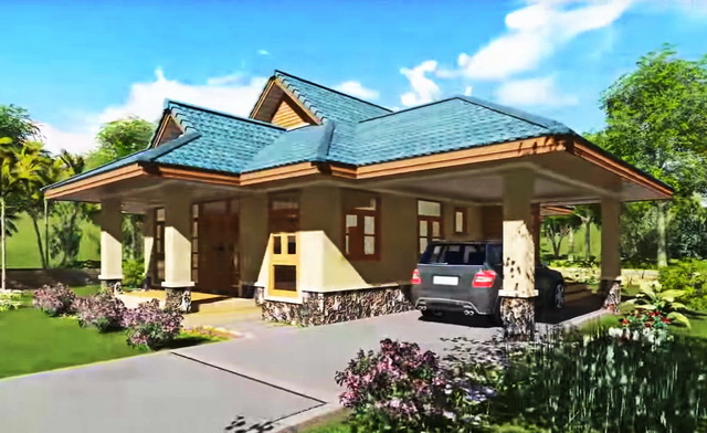 ผลงานจาก Home Plan 360 เป็นแบบบ้านที่มีชื่อว่า TR1-06 ลักษณะเป็นบ้านคอนกรีต หลังคาทรงมนิลามุงด้วยกระเบื้องโทนสีน้ำทะเล ตัดผนังภายนอกที่ตกแต่งด้วยโทนสีครีมดูอ่อนโยน เสริมด้วยผนังหินธรรมชาติที่แนวฐานของตัวบ้าน