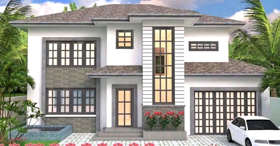 แบบบ้านสองชั้นสไตล์คอนเทมโพรารี 3 ห้องนอน 2 ห้องน้ำ ดีไซน์ภายในบรรยากาศสวยหรูน่าอยู่สุดๆ