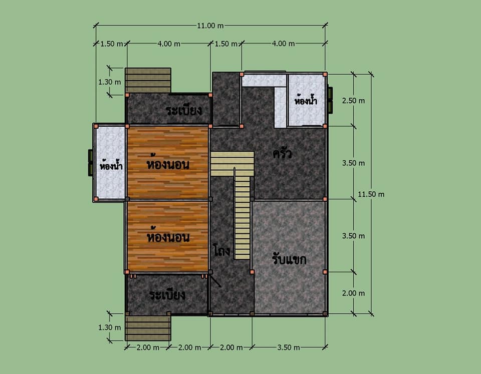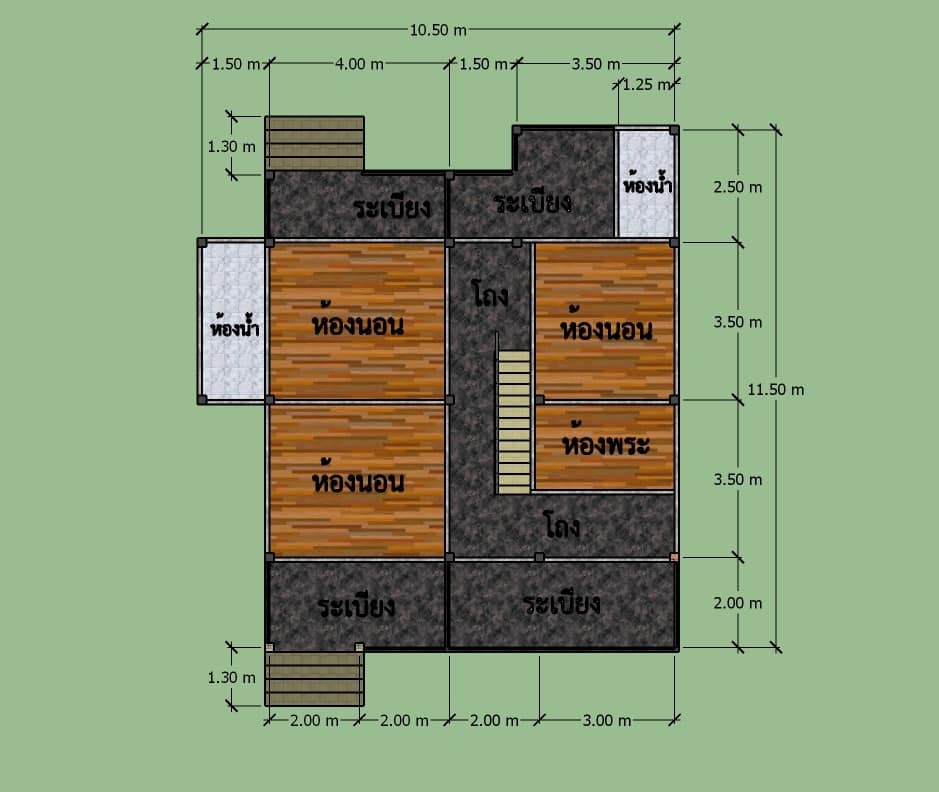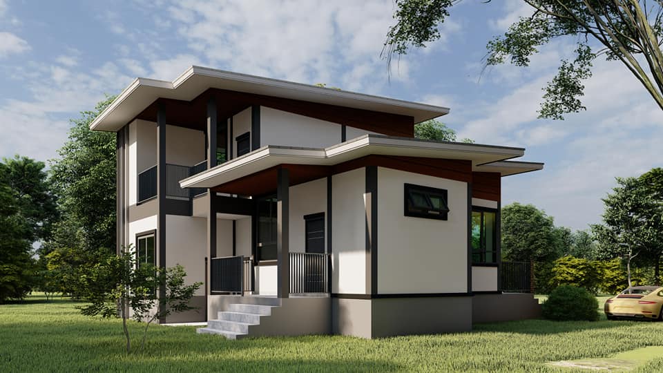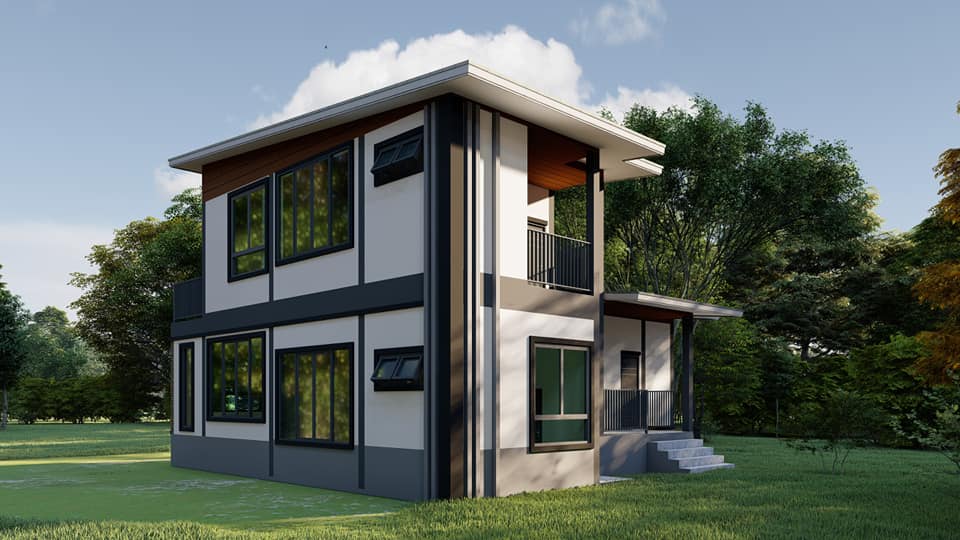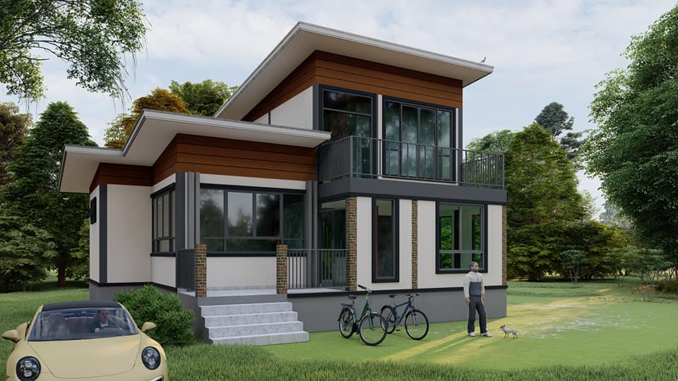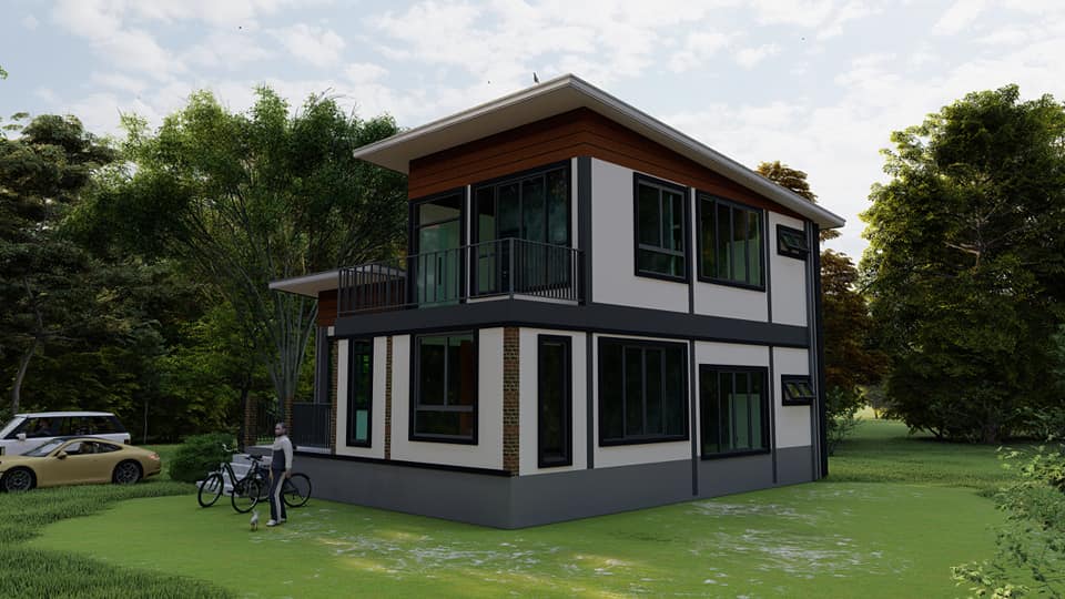 แบบบ้านสองชั้นสไตล์โมเดิร์น ทรงบ้านทันสมัย ฟังก์ชันภายในครบครัน 3 ห้องนอน 2 ห้องน้ำ พร้อมระเบียง 2 แห่ง