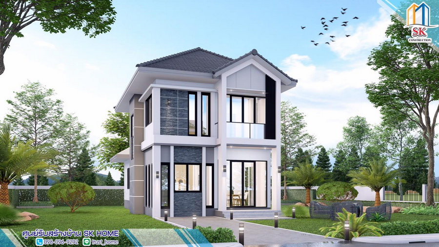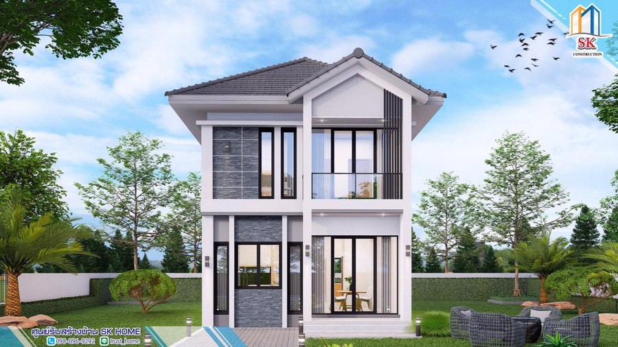 แบบบ้านสไตล์คอนเทมโพรารี ผลงานการออกแบบโดย SK Home บ้านที่ถูกออกแบบดีไซน์สวยงามทันสมัย ให้บรรยากาศการตกแต่งที่อบอุ่นสบายตา เป็นบ้านที่มีพื้นที่ใช้สอยเหมาะกับครอบครัวขนาดกลางโดยเฉพาะ พร้อมกับการออกแบบที่เน้นความโปร่งสบาย