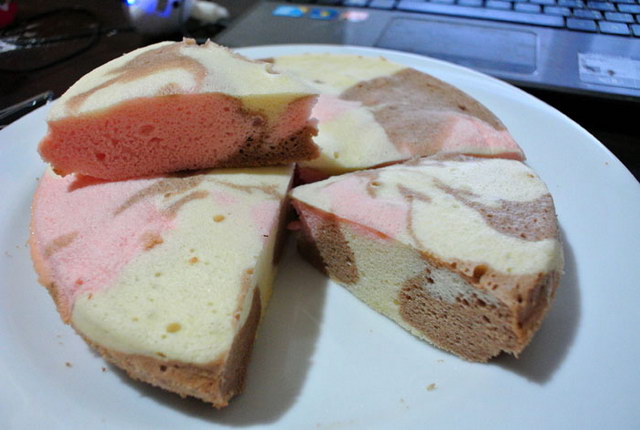 จำไม่ได้แล้วว่าหุงกี่นาที -*- แต่สามารถเช็คได้โดนใช้ตะเกียบจิ้มดู ถ้าเค้กไม่ติดไม้ก็คือสุกแล้วค่ะ