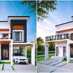 ลักษณะบ้านขนาดสามชั้น ออกแบบในสไตล์โมเดิร์น ในลักษณะของบ้านแฝด ผนังภายนอกตกแต่งด้วยโทนสีครีมผสานไปกับโทนสีน้ำตาล ผนังของบ้านตกแต่งด้วยหน้าต่างกระจกใสบานใหญ่ให้ความสว่าง และปลอดโปร่งแก่พื้นที่ภายในบ้าน หลังคาของบ้านออกแบบด้วยรูปทรงแบน ให้ความผสานกลมกลืนไปกับรูปทรงของบ้านได้เป็นอย่างดี