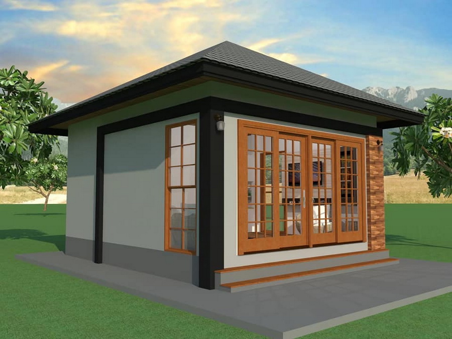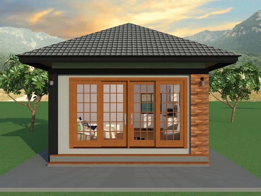 แบบเรือนรับรองแนวร่วมสมัยหลังนี้ประกอบไปด้วย 1 ห้องนอน 1 ห้องน้ำ 1 ห้องโถง 1 ห้องครัว พื้นที่ใช้สอยทั้งหมดประมาณ 30 ตารางเมตร ราคาแบบบ้านพร้อมสร้างอยู่ที่ 3,900 บาท