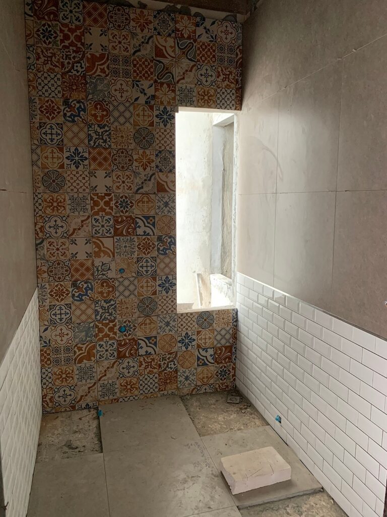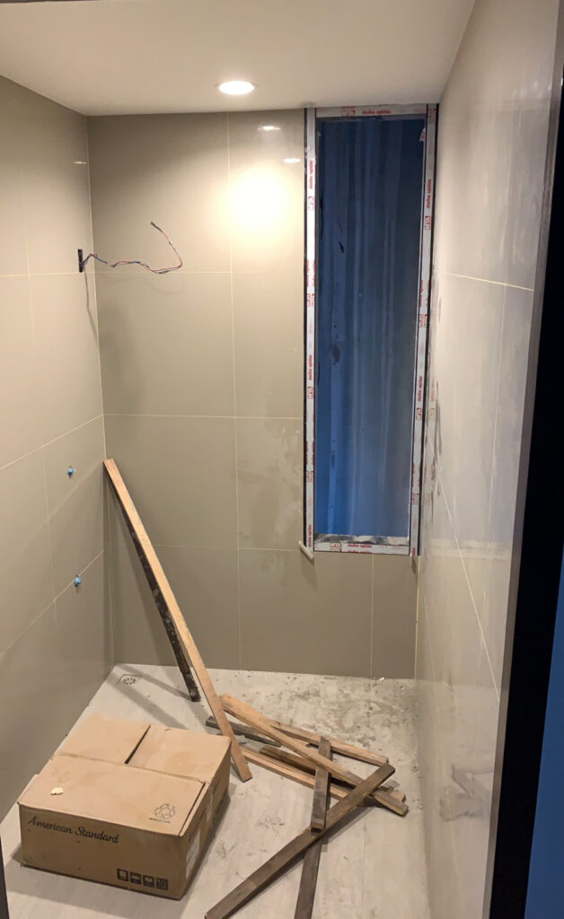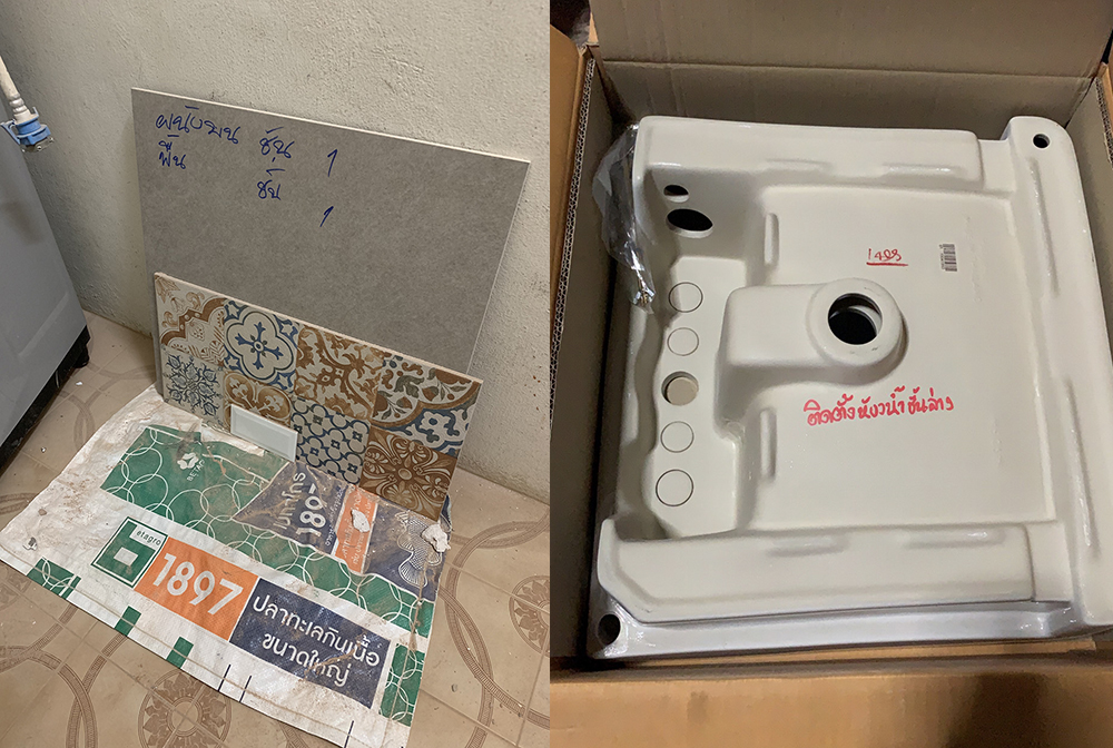 – กระเบื้องก็มีผลต่อราคาเยอะเหมือนกัน ทั้ง 3 ห้อง เราให้ ผรม. ออกแบบเลือกซื้อกระเบื้องเองเลย แต่ก่อนจะซื้อก็จะถ่ายรูปมาให้ดูว่าเราโอเคมั้ย เราว่ามันมีความซับซ้อนนะ เอ๊ะ!หรือฉันนั้นเบาปัญญา คือนอกจากต้องเลือกจะเบื้องให้เข้ากัน ยังมีการคำนวณจำนวนแผ่น รอยต่อ คือช่างก็จะคิดอันนี้ตัดแล้วสวย อันนี้ไม่สวย และมีพวกขอบคิ้วต่างๆ คิดไปคิดมาเลยยกหน้าที่ให้ ผรม. จัดการ