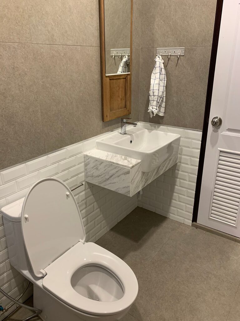 – สุขภัณฑ์ใช้ American Standard เราใช้รุ่นเดียวกันหมดทุกห้อง อย่างที่แจ้งเรื่องบำรุงรักษาจะได้สะดวก ที่เลือก American Standard เพราะของเก่าที่ใช้มา 30 ปี ก็ American Standard เลยค่อยข้างเชื่อมั่นในคุณภาพ