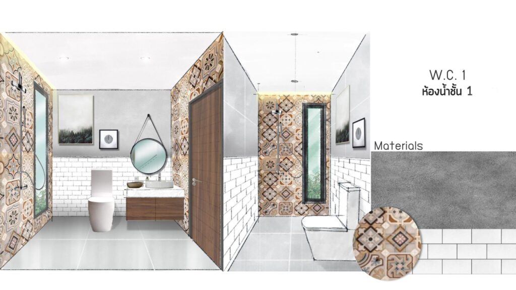 ห้องนี้เราจะใช้บ่อยสุด ความยากที่เจอคือห้องน้ำมีขนาดค่อนข้างใหญ่ซึ่งถ้าเราแก้ layout หรือย้ายพวกท่อน้ำทิ้ง งบก็จะบานเลยต้องแก้ปัญหา