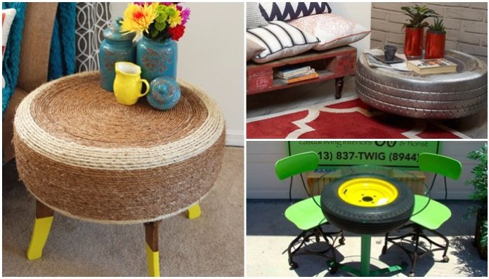 นำยางรถยนต์เก่า รวมทั้งยางรถจักรยานยนต์ มาดัดแปลงรวมกับโครงไม้ เหล็ก โลหะ สร้างเป็นชุดเก้าอี้สนาม ของแต่งสวนจำพวกกระถางดอกไม้ก็ได้ ตกแต่งร่วมกับของใกล้ตัว ที่นำมาเพิ่้มมูลค่า ให้น่าใช้งานยิ่งขึ้น ผสมกับพรรณไม้ ที่ตกแต่งบริบทให้น่าพักผ่อนขึ้นอีกด้วย
