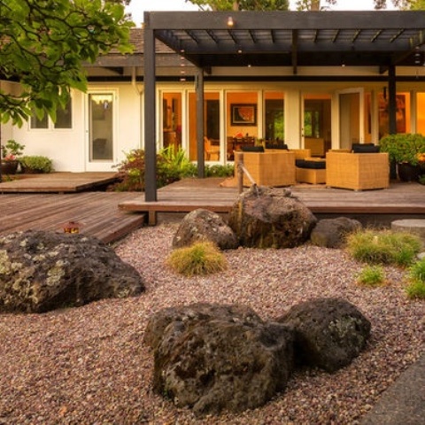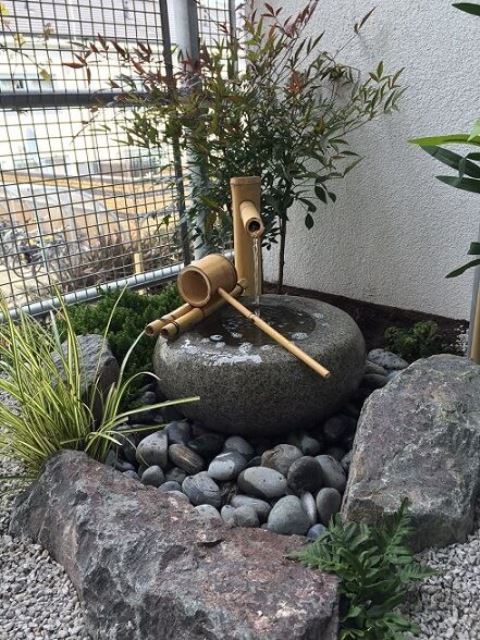 ต่อมาเลือกใช้ก้วนหินและกรวดขนาดและเฉดสีต่าง ๆ ในการตกแต่ง ซึ่งถือว่าเป็นเอกลักษณ์ของการตกแต่งสวนแบบญี่ปุ่นโดยเฉพาะ