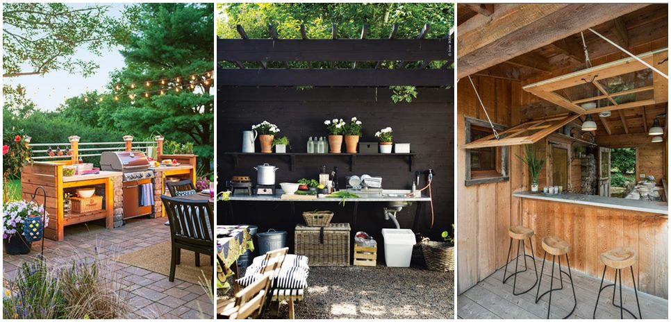 มักจะใช้พื้นที่ตามเฉลียงบ้าน สร้างเป็นส่วนครัวกลางแจ้ง มาพร้อมซุ้มหลังคา และสวนหย่อมร่มรื่น ตามสไตล์ที่เจ้าของบ้านต้องการ
