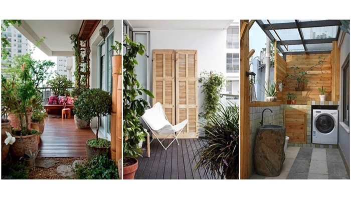 เลือกตกแต่งให้อยู่ตามเฉลียง ระเบียง ชาน พื้นที่แคบ ของบ้าน อาจจะมีส่วนยื่นของเฉลียงก็ได้ ดีไซน์ของตกแต่งจากไม้ เช่นวัสดุปูพื้น ปูผนัง รวมทั้งของใช้ ของตกแต่งสวน จำพวกกระถางดอกไม้ ชั้นวางของ และเฟอร์นิเจอร์ลอยตัว สร้างพื้นที่พักผ่อนได้อยู่ร่วมกับธรรมชาติ อัดแน่นกันอย่างลงตัว จัดวางชุดเก้าอี้สนามเพียงเล็กน้อย รองรับกิจกรรมที่จะตามมาแล้วละครับ