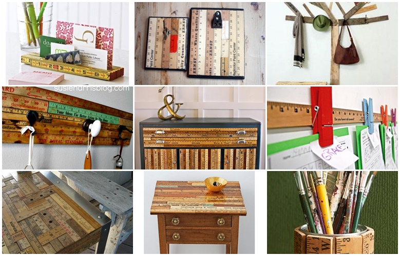 นำไม้บรรทัด ที่ทำมาจากไม้ สร้างเป็นกรอบรูป หรือชั้นวางของ ห้อยแขวนตามผนัง