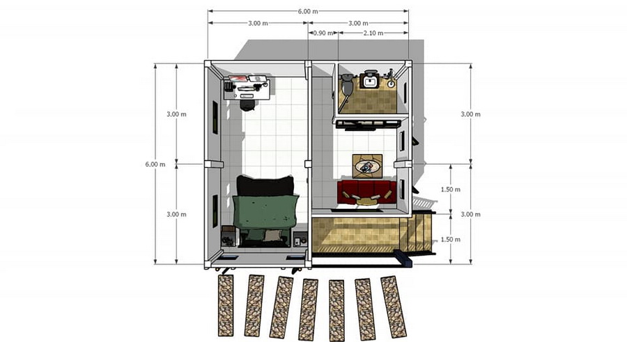 แบบบ้านหลังเล็กกะทัดรัด ดีไซน์ในสไตล์โมเดิร์น 1 ห้องนอน 1 ห้องน้ำ พื้นที่ใช้สอย 36 ตร.ม.