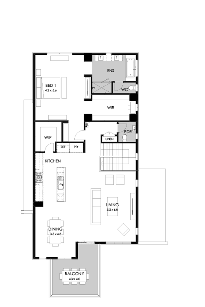 แบบบ้านหลังนี้เป็นบ้านขนาดสองชั้น ตัวบ้านได้รับการออกแบบด้วยรูปทรงเรขาคณิต จึงให้รูปทรงที่ดูทันสมัย ด้านการตกแต่งนั้น ผนังภายนอกจะเลือกใช้สองโทนสี ได้แก่ สีขาวกับสีเทาเข้ม ซึ่งช่วยเป็นโทนสีที่เรียบง่าย แต่ก็ช่วยให้บ้านดูทันสมัยเข้ากับดีไซน์โมเดิร์น
