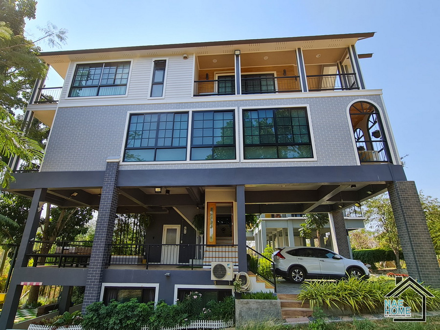 บ้านสวยสไตล์ยุโรป ผลงานการออกแบบและก่อสร้างโดยทีมงานจาก Nae Home Construct บ้านที่มีพื้นที่ใช้สอยกว้างขวางสุด ๆ จึงเหมาะกับครอบครัวใหญ่ มาพร้อมกับรายละเอียดการออกแบบและตกแต่งในแบบบ้านทรงยุโรปที่สวยงามและมีเอกลักษณ์เฉพาะตัว