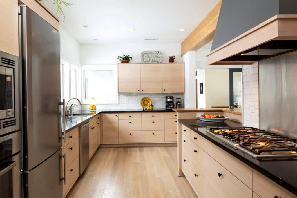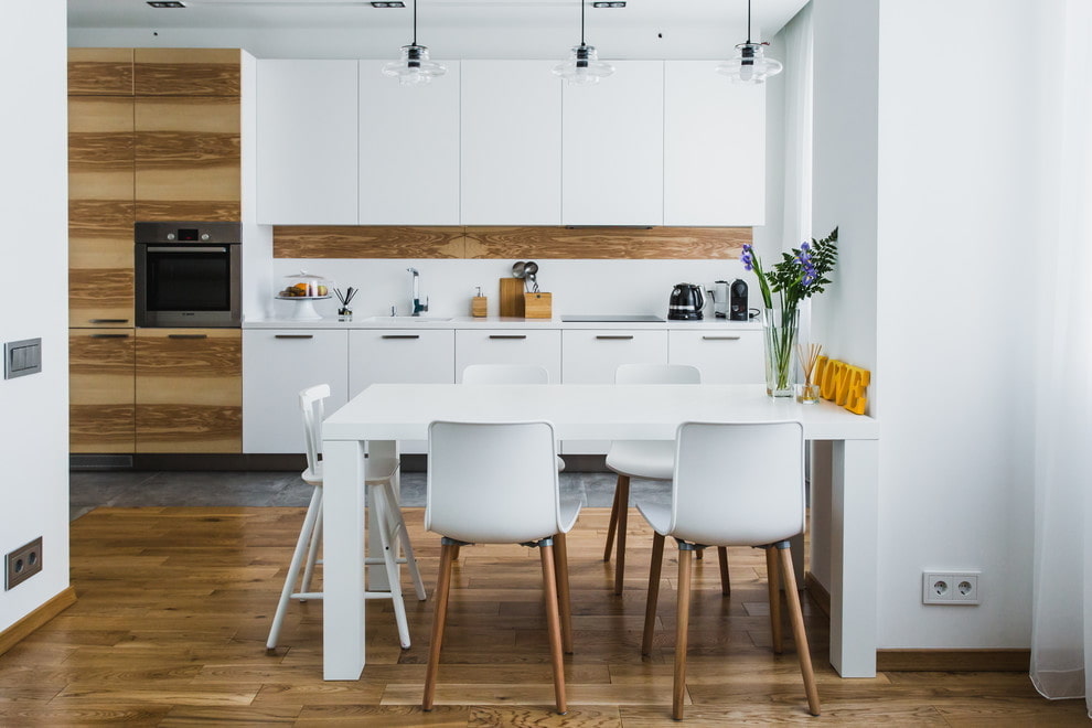 นอกจากนี้ ยังควรใช้วัสดุจากธรรมชาติเข้ามาเป็นส่วนประกอบด้วย อย่างเช่นพื้นไม้ ผนังไม้ รวมไปถึงกระถางต้นไม้สีเขียว เพื่อเพิ่มความอบอุ่นเป็นกันเองให้กับบรรยากาศการทำอาหารหรือทานอาหาร
