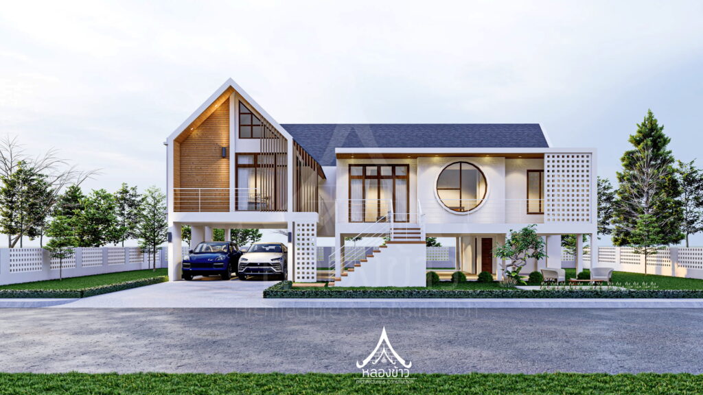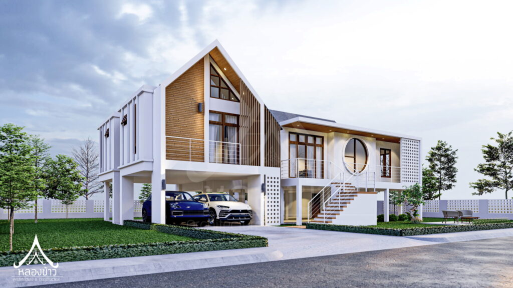แบบบ้านยกสูงสไตล์นอร์ดิกผสมกลิ่นอายญี่ปุ่น ผลงานการออกแบบโดยทีมงาน Lhong Khao Architecture&Construction บ้านหลังใหญ่เพื่อครอบครัวใหญ่ ผสานงานดีไซน์แบบตะวันออกและตะวันตกที่มีความมินิมอลเป็นตัวชูโรง