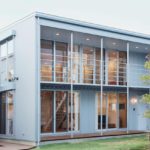 บ้านโครงสร้างคอนกรีต เห็นได้ชัดเจน ตั้งแต่มองภายนอก รูปทรงกล่องเรียบง่าย ใช้การเจาะช่องแสงเป็นตัวกำหนดไฮไลท์ของบ้าน และยังตกแต่งด้วยไม้และหินทรายตามผนังบ้านเพียงเล็กน้อย เน้นตามคอนเซ็ปของบ้าน หลังคาทรงสแลป ที่ให้ความภูมิฐานแบบเต็มๆ