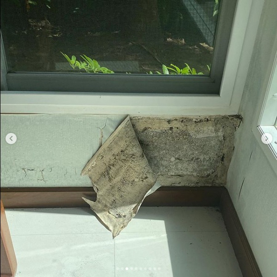 เริ่มจากผนังภายในบ้าน จากที่ควรจะต้องสะอาดสวยงาม แต่ผนังของบ้านหลังนี้กับพองจนทำให้ความชื่นเข้าไปภายในจนเกิดเป็นเชื้อราขึ้น