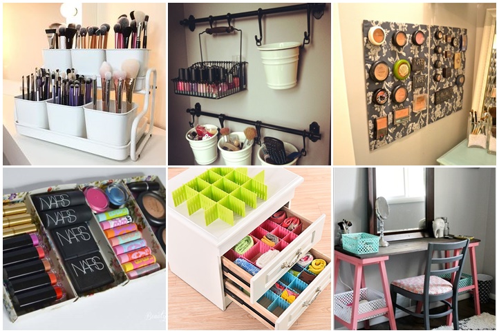 ประยุกต์จากขวดโหล ถัง กล่อง ต่างๆ นำมาสร้างพื้นที่เก็บเครื่องสำอางแบบเรียบๆง่ายๆกันเลย
