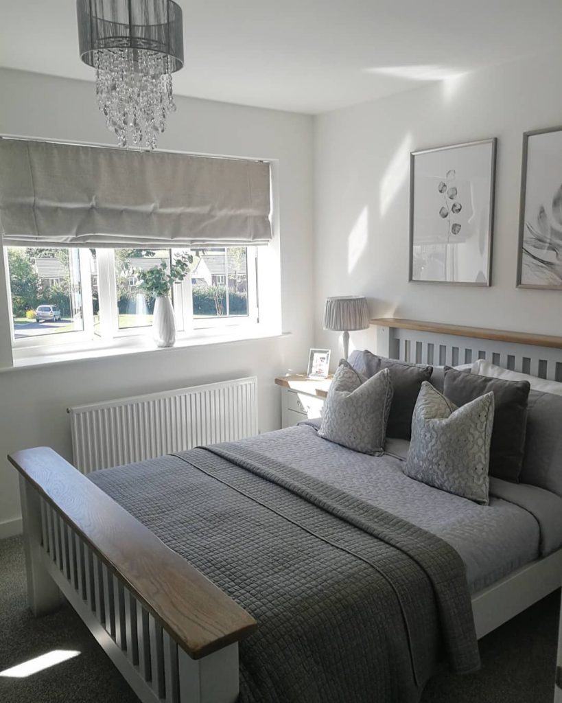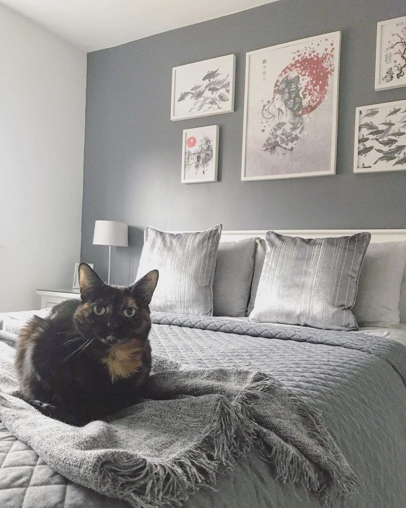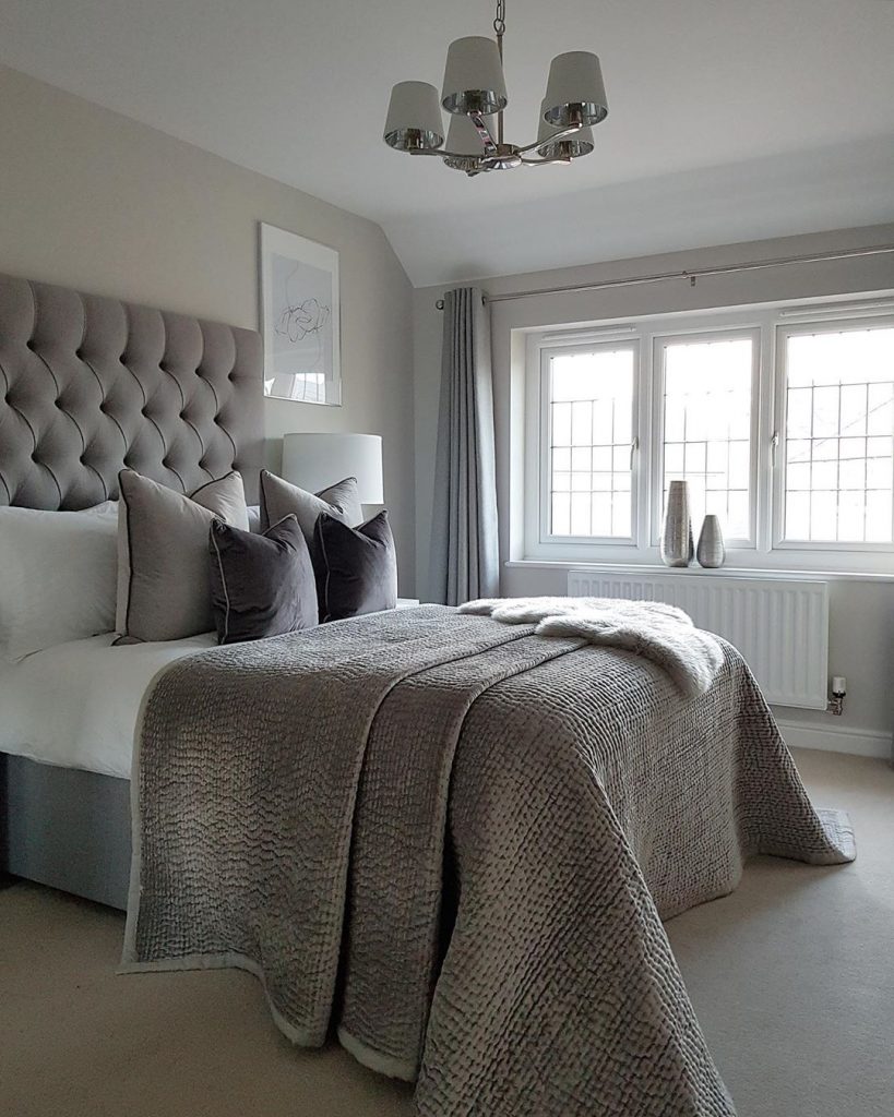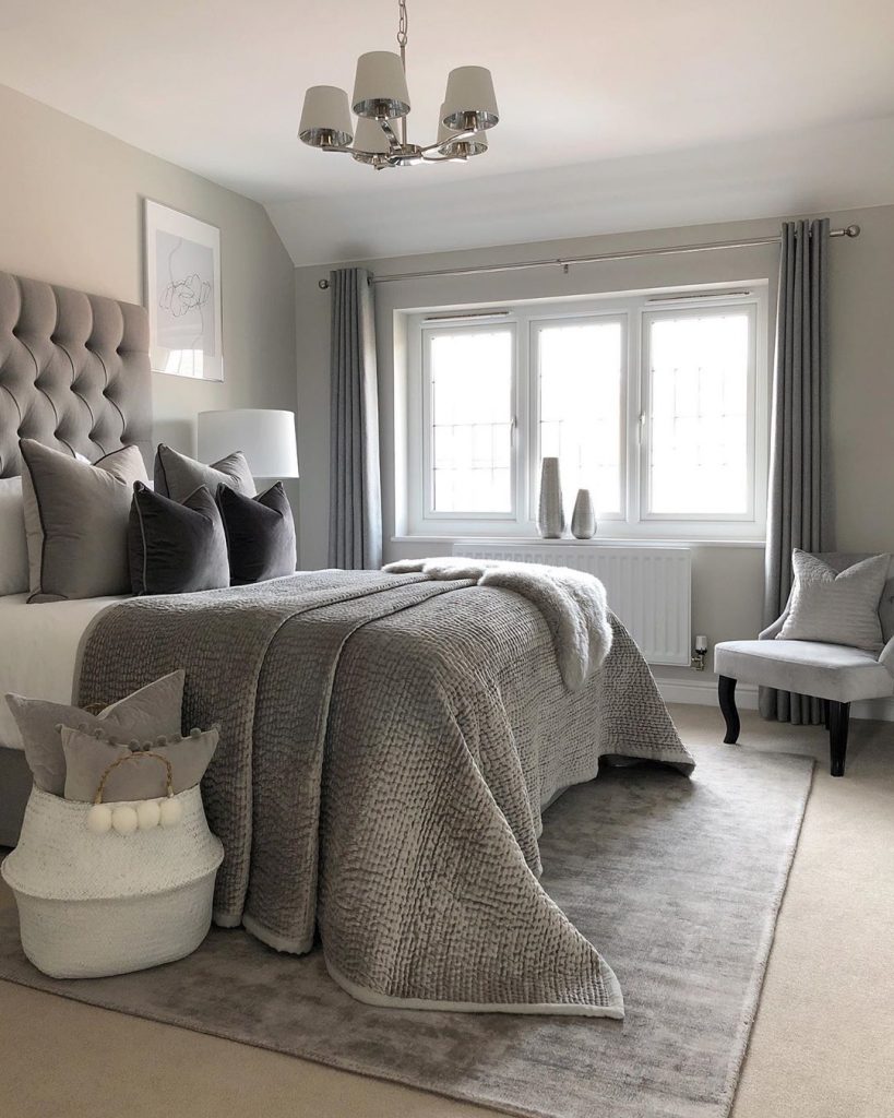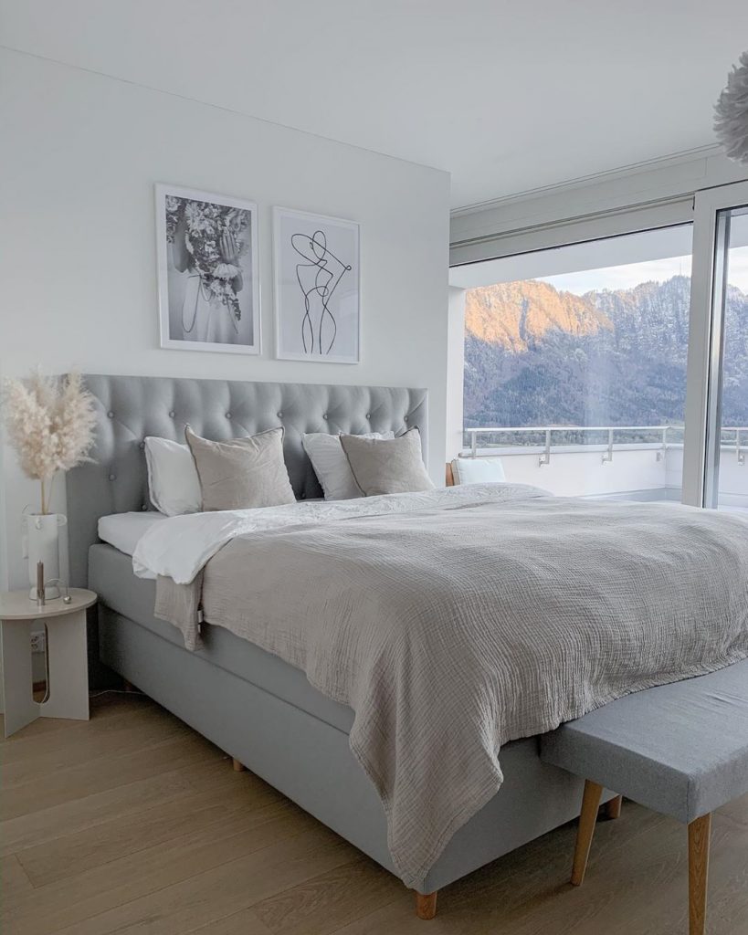 โทนสีเทา เรียกได้ว่าเป็นโทนสีกลาง ๆ ที่สามารถเข้าได้กับสีทุกสีอย่างไม่ยากและไม่ขัดเขินนัก เป็นโทนสีที่ให้ความรู้สึกเงียบสงบ อบอุ่น แฝงไปด้วยกลิ่นอายความหรูหรา ซึ่งโทนสีเทานี้ก็นิยมนำมาใช้ตกแต่งห้องนอนด้วยเช่นกัน