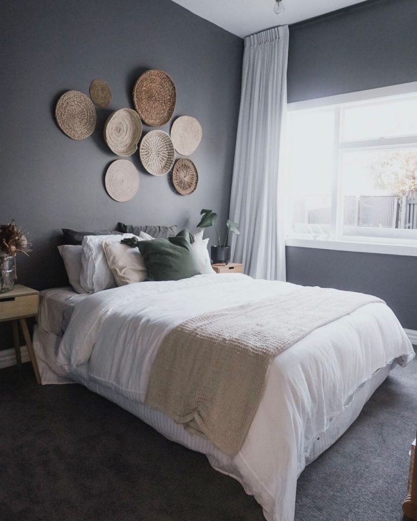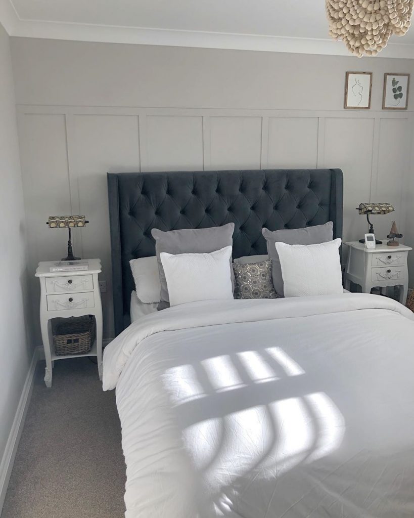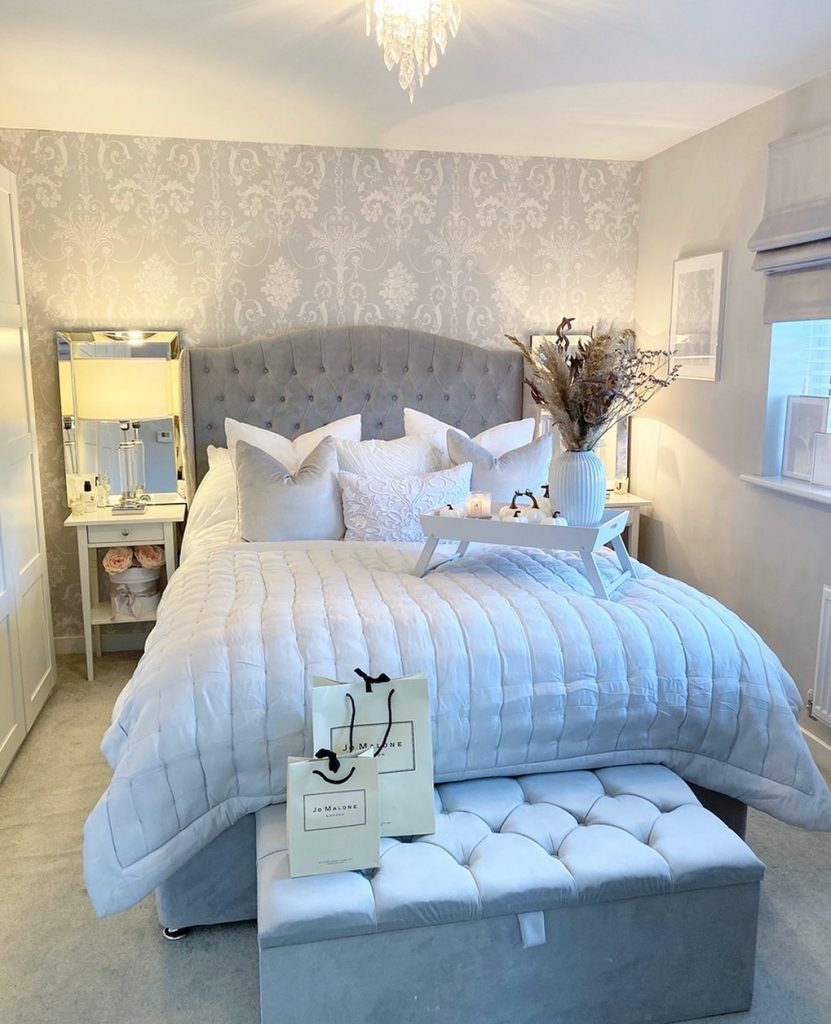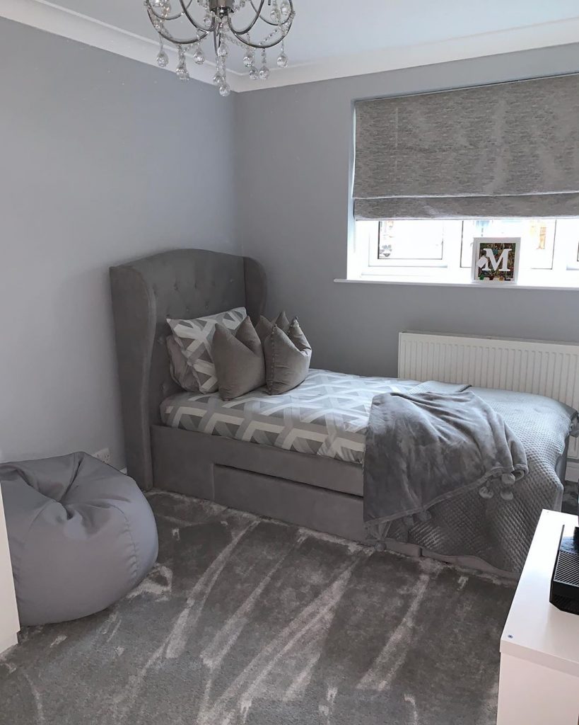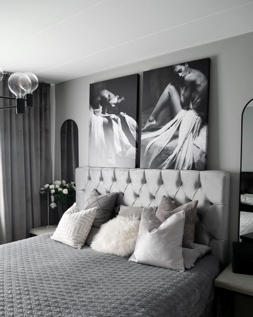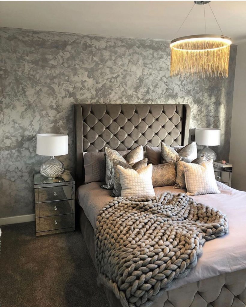 โทนสีเทา เรียกได้ว่าเป็นโทนสีกลาง ๆ ที่สามารถเข้าได้กับสีทุกสีอย่างไม่ยากและไม่ขัดเขินนัก เป็นโทนสีที่ให้ความรู้สึกเงียบสงบ อบอุ่น แฝงไปด้วยกลิ่นอายความหรูหรา ซึ่งโทนสีเทานี้ก็นิยมนำมาใช้ตกแต่งห้องนอนด้วยเช่นกัน