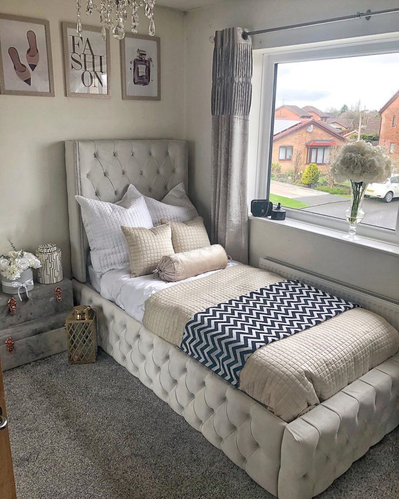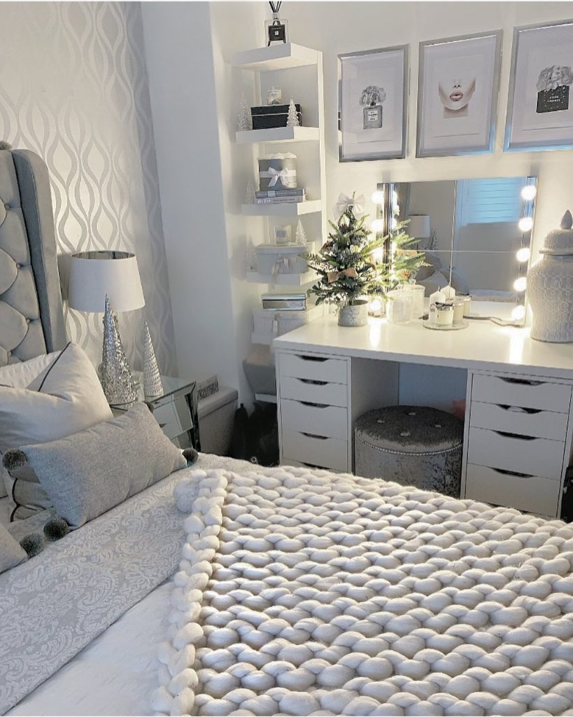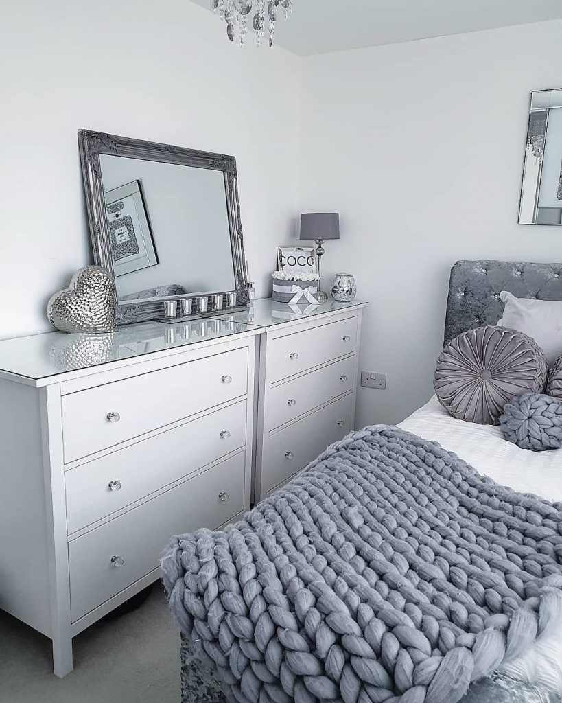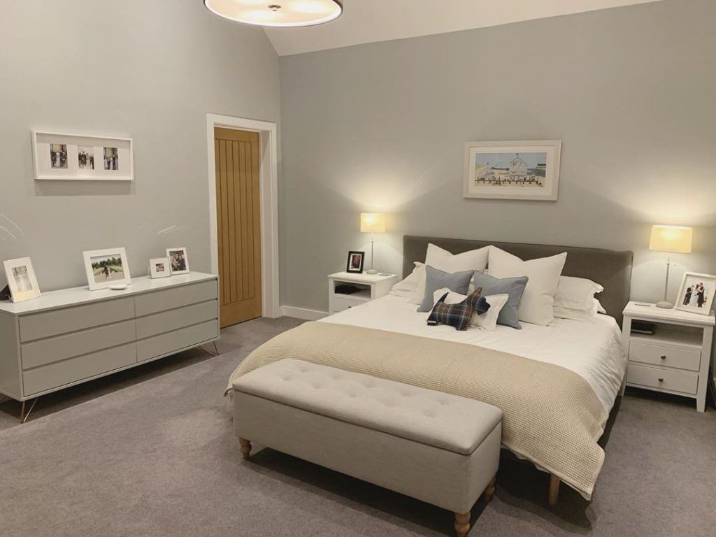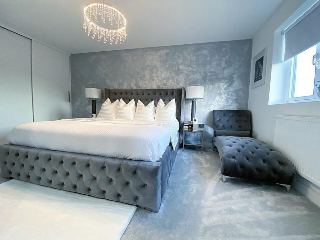 โทนสีเทา เรียกได้ว่าเป็นโทนสีกลาง ๆ ที่สามารถเข้าได้กับสีทุกสีอย่างไม่ยากและไม่ขัดเขินนัก เป็นโทนสีที่ให้ความรู้สึกเงียบสงบ อบอุ่น แฝงไปด้วยกลิ่นอายความหรูหรา ซึ่งโทนสีเทานี้ก็นิยมนำมาใช้ตกแต่งห้องนอนด้วยเช่นกัน