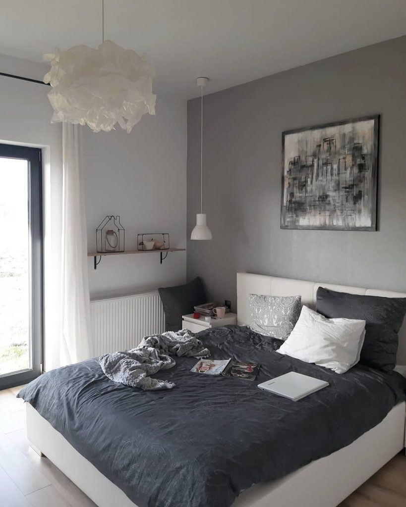เนื่องจากโทนสีเทาเป็นโทนสีกลาง ๆ ไม่มืดทึบหรือสว่างจนเกินไป จึงควรจะต้องมีแสงไฟที่สว่างเพียงพอ เพื่อเพิ่มความมีชีวิตชีวาและไม่ให้ห้องนอนดูอึดอัดไม่น่าพักผ่อน