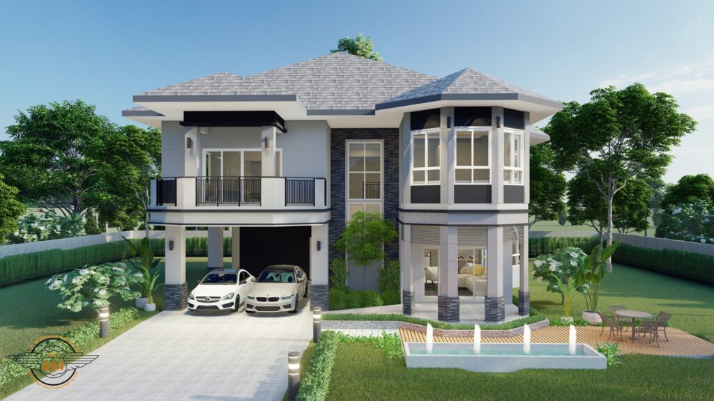 แบบบ้านสไตล์โรมันประยุกต์หลังนี้ประกอบไปด้วย 6 ห้องนอน 5 ห้องน้ำ 2 ที่จอดรถ บนพื้นที่ใช้สอยกว้างขวางถึง 446 ตารางเมตร งบประมาณก่อสร้าง 5.89 ล้านบาทครับ (รวมค่าวัสดุก่อสร้างพร้อมค่าแรงแล้ว) สำหรับใครที่ต้องการข้อมูลเพิ่มเติม สามารถสอบถามผู้ออกแบบผ่านช่องทางติดต่อท้ายบทความนี้ได้เลยครับ