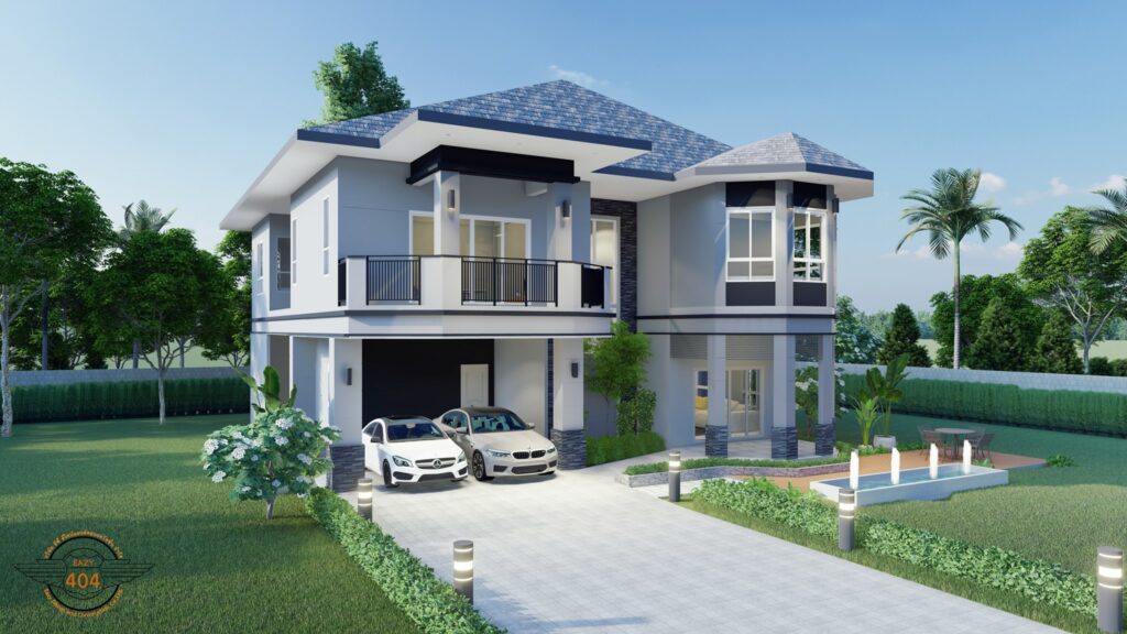 แบบบ้านสไตล์โรมันประยุกต์ ผลงานการออกแบบจากเพจ แบบบ้านสวยพร้อมก่อสร้าง Design&Construction บ้านหลังใหญ่สำหรับครอบครัวใหญ่ เป็นดีไซน์ที่ได้รับแรงบันดาลใจมาจากสถาปัตยกรรมยุคโรมัน แต่ปรับฟังก์ชันให้เข้ากับไลฟ์สไตล์ของคนไทย บนพื้นที่ใช้สอยกว้างขวางถึง 446 ตารางเมตร