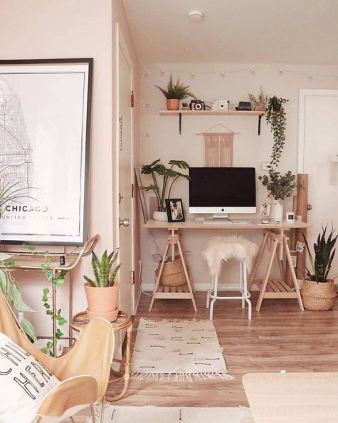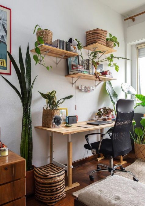 ภายในโฮมออฟฟิศแนวโบโฮชิคจึงต้องมีกระถางต้นไม้อยู่จำนวนหนึ่ง ไม่ว่าจะเป็นกระถางแขวน กระถางห้อย หรือแม้แต่ปลูกไม้เลื้อยไปตามผนังห้อง ซึ่งมันจะช่วยเพิ่มความสดชื่นและผ่อนคลายให้กับบรรยากาศการทำงานของคุณด้วย
