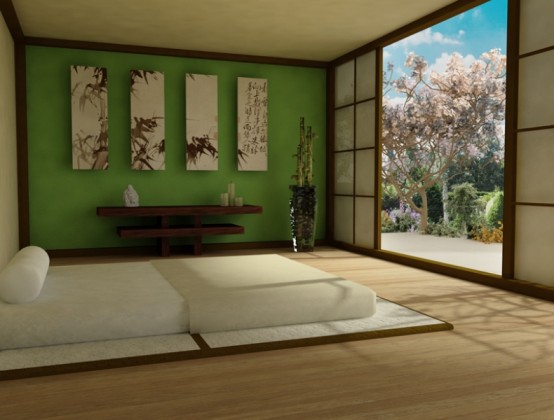 ลักษณะโดยทั่วไปของการตกแต่งในแบบศิลปะเซน จะเน้นที่ความเรียบง่าย เน้นความโปร่งสบาย วัตถุและของตกแต่งภายในห้องนอนจะมีความกลมกลืนไปกับพื้นที่ห้องอย่างเป้นอันหนึ่งอันเดียวกัน โดยจะไม่มีจุดใดจุดหนึ่งดูโดดเด่นสะดุดตาจนเกินไป