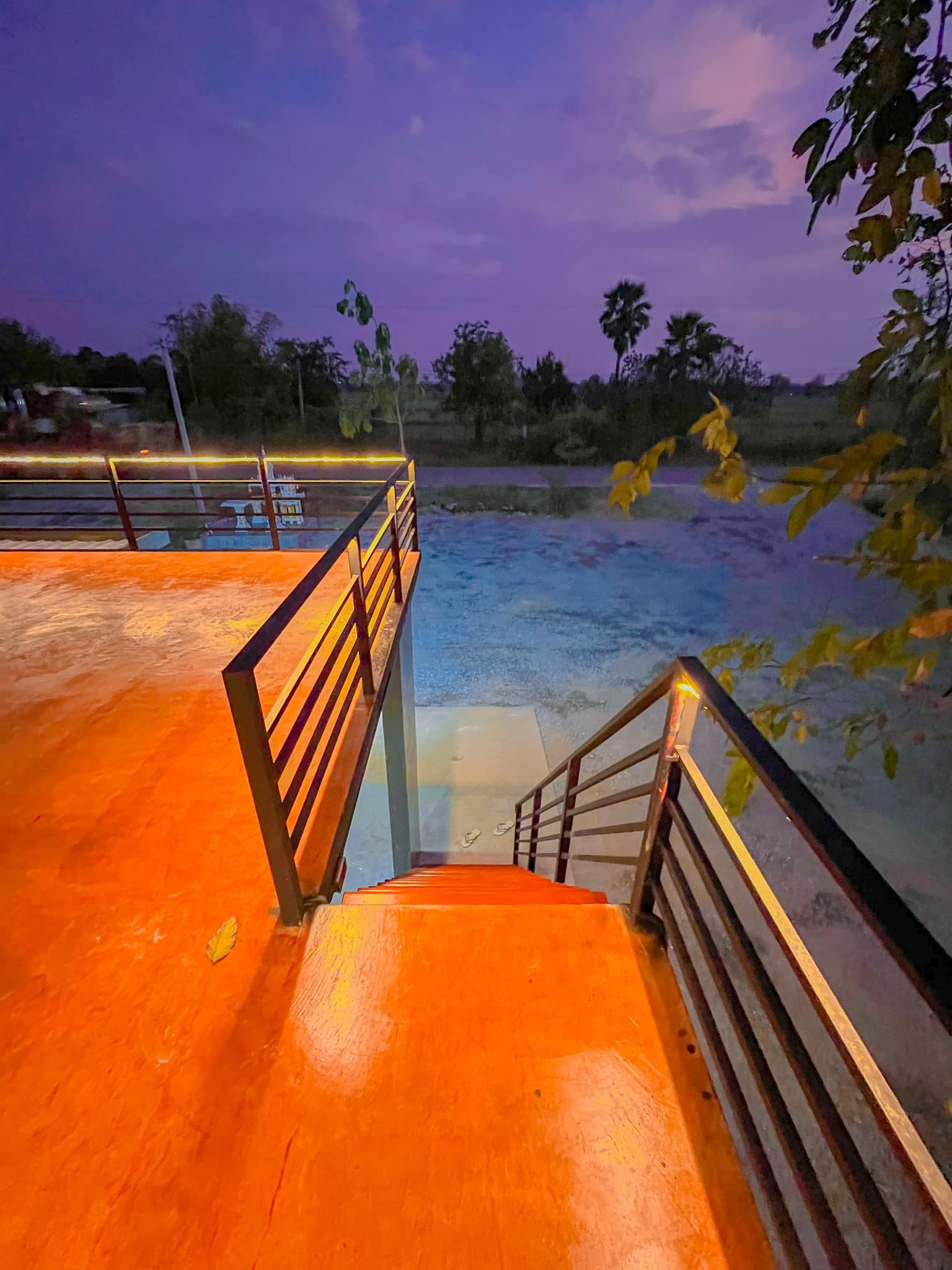 และจุดเด่นของบ้านหลังเล็กหลังนี้ ก็คือพื้นที่ดาดฟ้า โดยที่เราจะสามารถขึ้นมายังพื้นที่ดาดฟ้าได้จากบันไดตรงนี้