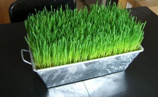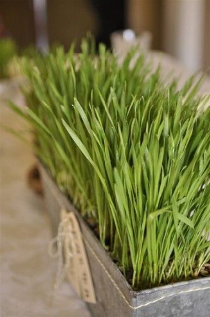 วีทกลาส หรือต้นอ่อนของต้นข้าวสาลี ซึ่งมีลักษณะเป็นต้นหญ้าเล็ก ๆ ที่มีลำต้นตรง ต้นเป็นพุ่มหนาแน่น ซึ่งด้วยลักษณะของวีทกลาสดังนี้ จึงมีความสวยงามเหมือนทุ่งนาในขนาดหย่อม ๆ จึงเหมาะกับการนำมาใช้ตกแต่งบ้านในภาชนะต่าง ๆ