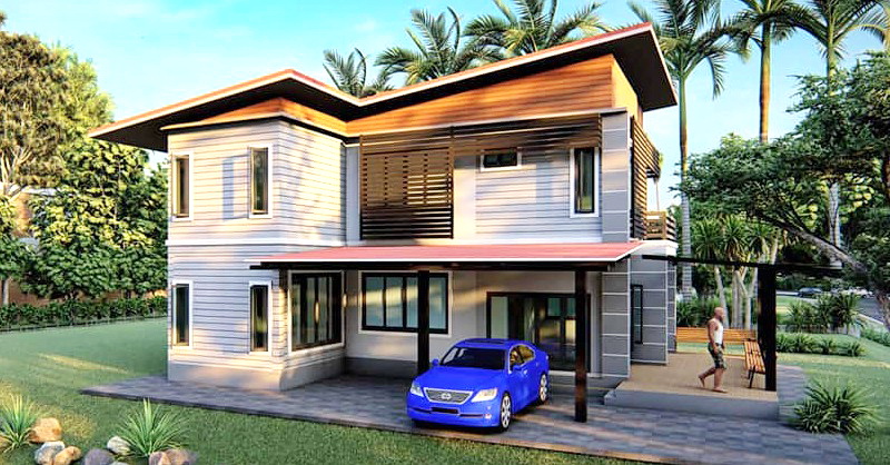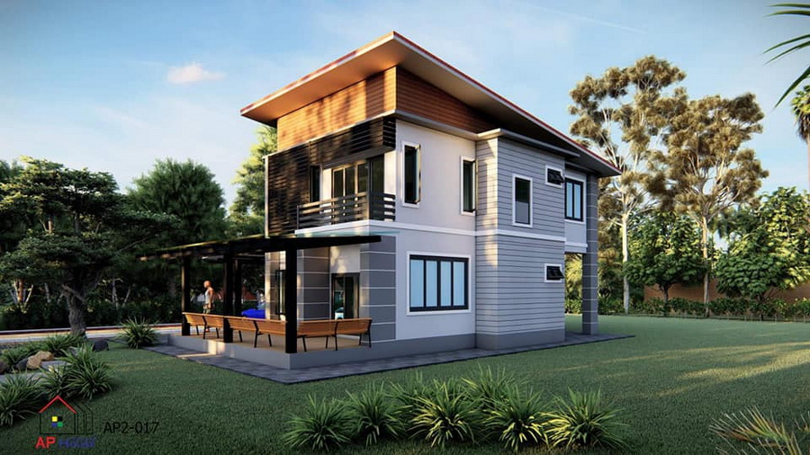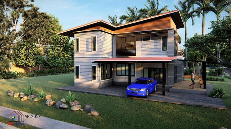 สำหรับแบบบ้านหลังนี้เป็นบ้านขนาดสองชั้น โดยมีพื้นฐานการออกแบบมาจากสไตล์โมเดิร์น จึงมีรูปทรงที่สวยงาม ด้านรายละเอียดการตกแต่งนั้น ผนังภายนอกเลือกใช้โทนสีออกเทา เพิ่มดีเทลด้วยสีน้ำตาล จึงให้บรรยากาศที่อบอุ่นสวยงาม