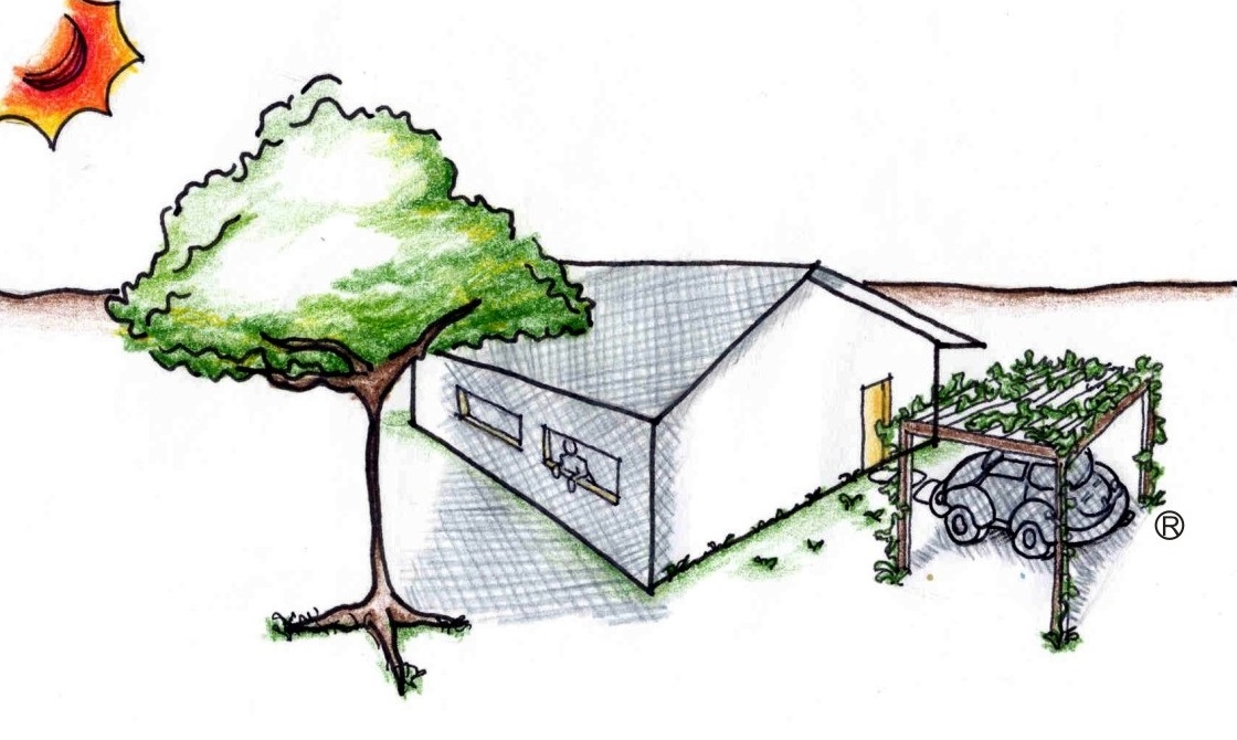 การปลูกต้นไม้ไว้ข้างบ้าน โดยตั้งไว้ในจุดที่สามารถช่วยกรองความร้อนและให้แสงแดดอ่อนๆ ลอดผ่าเข้าสู่ตัวบ้าน หากเป็นต้นไม้ที่สูงและมีพุ่มแผ่ค่อนข้างกว้างจนบังหลังคาได้ ก็จะช่วยกรองความร้อนบนหลังคาได้อีกทางหนึ่งด้วย