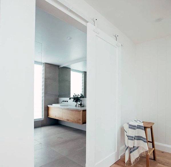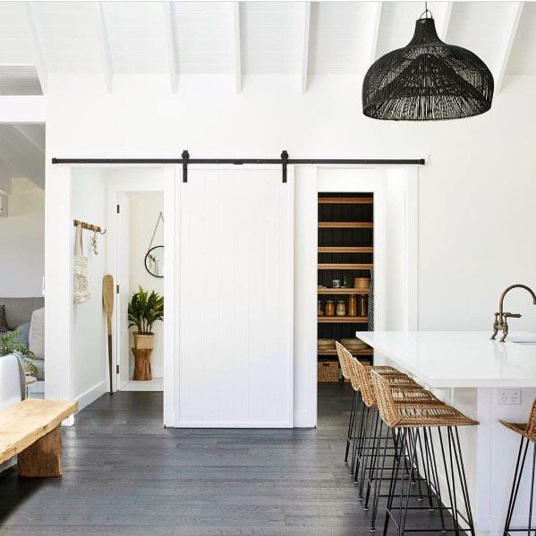 ลักษณะโดยทั่วไปของประตูบานเลื่อนสไตล์โรงนาก็คือ บานประตูจะเป็นบานไม้แขวนไว้กับราวที่ติดผนังด้านบน ประตูจึงดูเหมือนลอยตัวอยู่นั่นเอง เวลาเปิดก็จะใช้วิธีการเลื่อนไปด้านข้างนั่นเองครับ