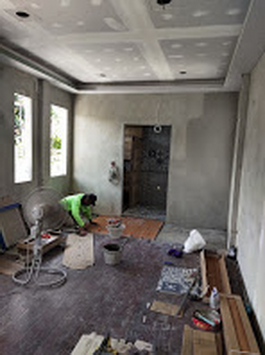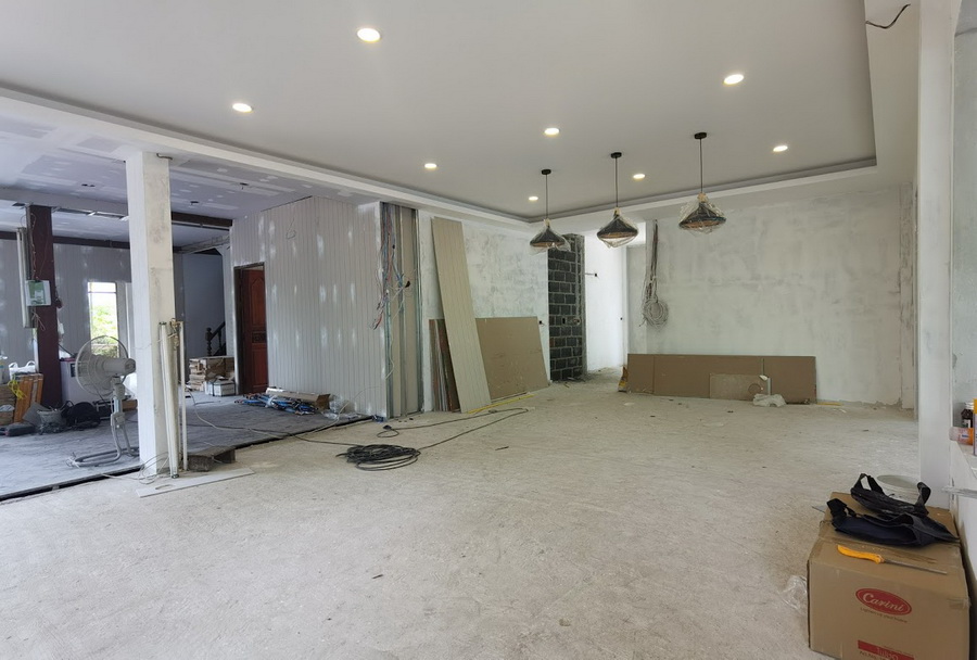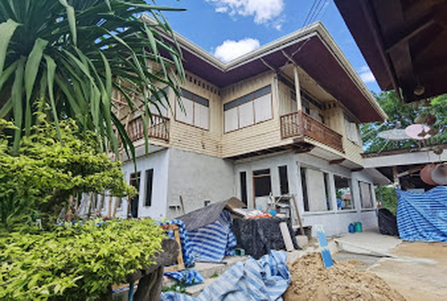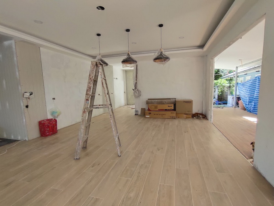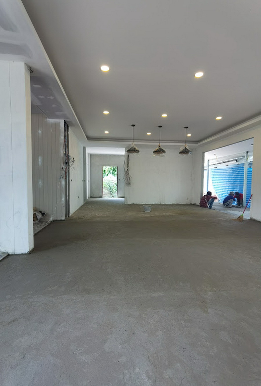 ทุบผนังชั้นล่างหมดและก่อสร้างลงเสาเข็มส่วนด้านหลังที่จะทำเป็นครัวและห้องนั่งเล่น ทำใหม่เหมือนสร้างบ้านใหม่เลย