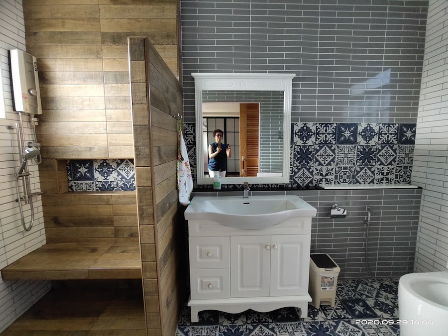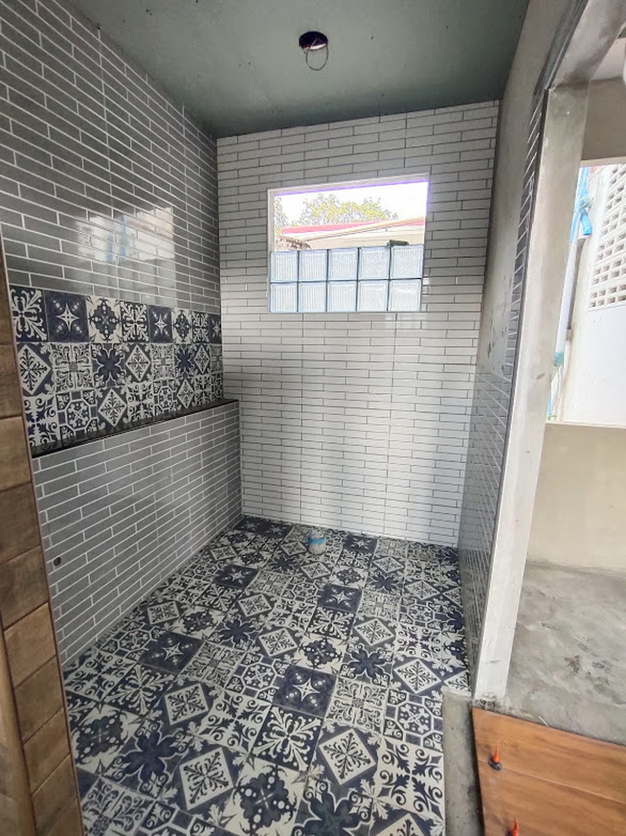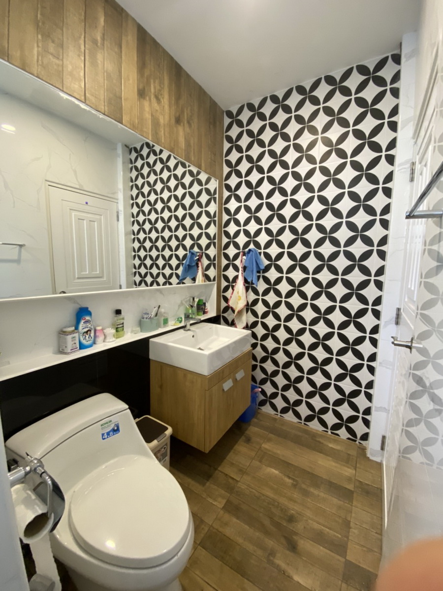 ห้องน้ำชั้นล่างก็ทำแบบ lay out เดิมแยกโซนเปียกโซนแห้งเบิ้ลผนังไว้วางของได้เยอะๆ
