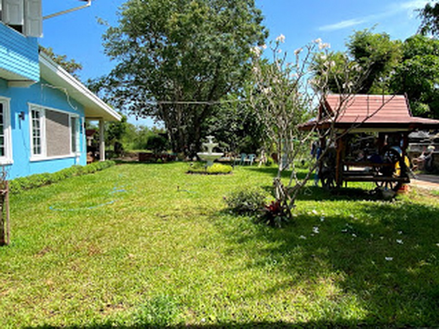 จ้างรถแมคโครมาขุดปูนพื้นที่จอดรถแล้วเอาดินมาถมปรับสภาพภูมิทัศน์ จ้างคนมาปูหญ้าปลูกไทรเกาหลี ซื้อต้นไม้มาจัดสวน หมดไปเยอะเหมือนกันเพราะพื้นที่มันกว้าง