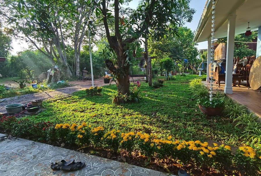 สวนหน้าบ้านเดิมทีรกมาก ๆ จัดการรื้อต้นไม้เก่าออกบางส่วน เอาดินมาถมเพิ่มปรับระดับและลงต้นไม้ปลูกหญ้าใหม่ทำให้หน้าบ้านดูโล่ง ๆ สบาย ๆ